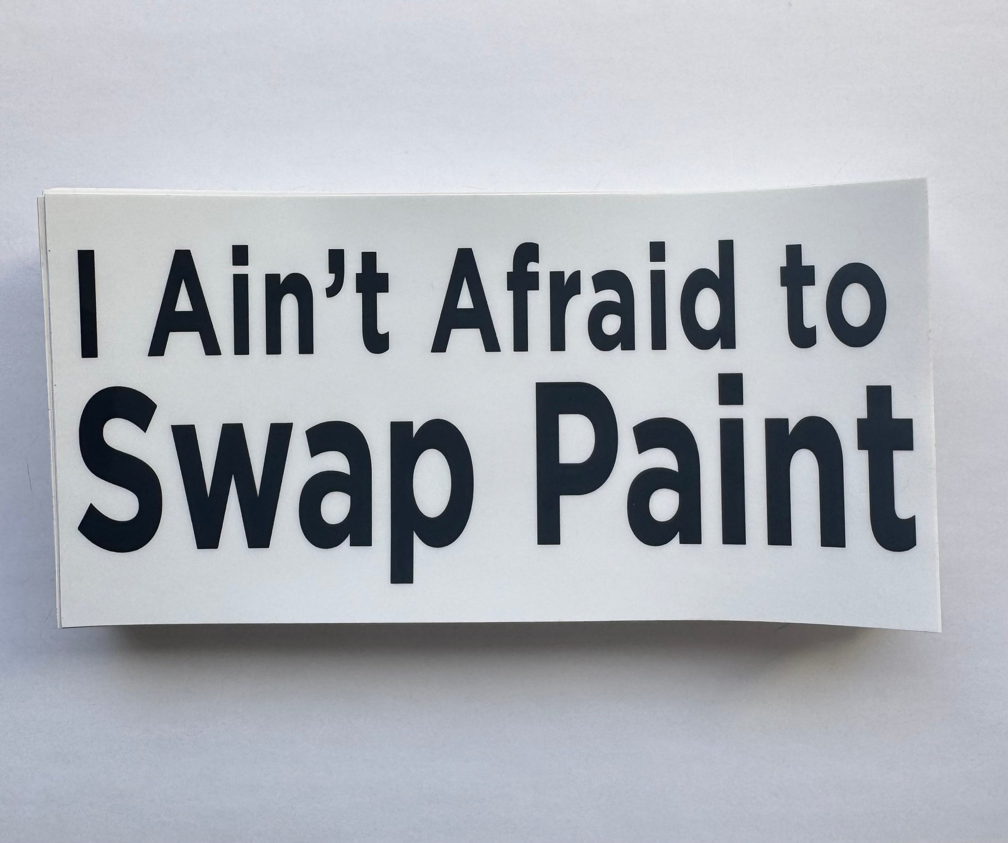 You tell em, son! Let em all know! These 7.5”x3.5” bumper stickers are printed on waterproof vinyl. Quality and made to last, brother. Assuming you don’t swap too much paint.